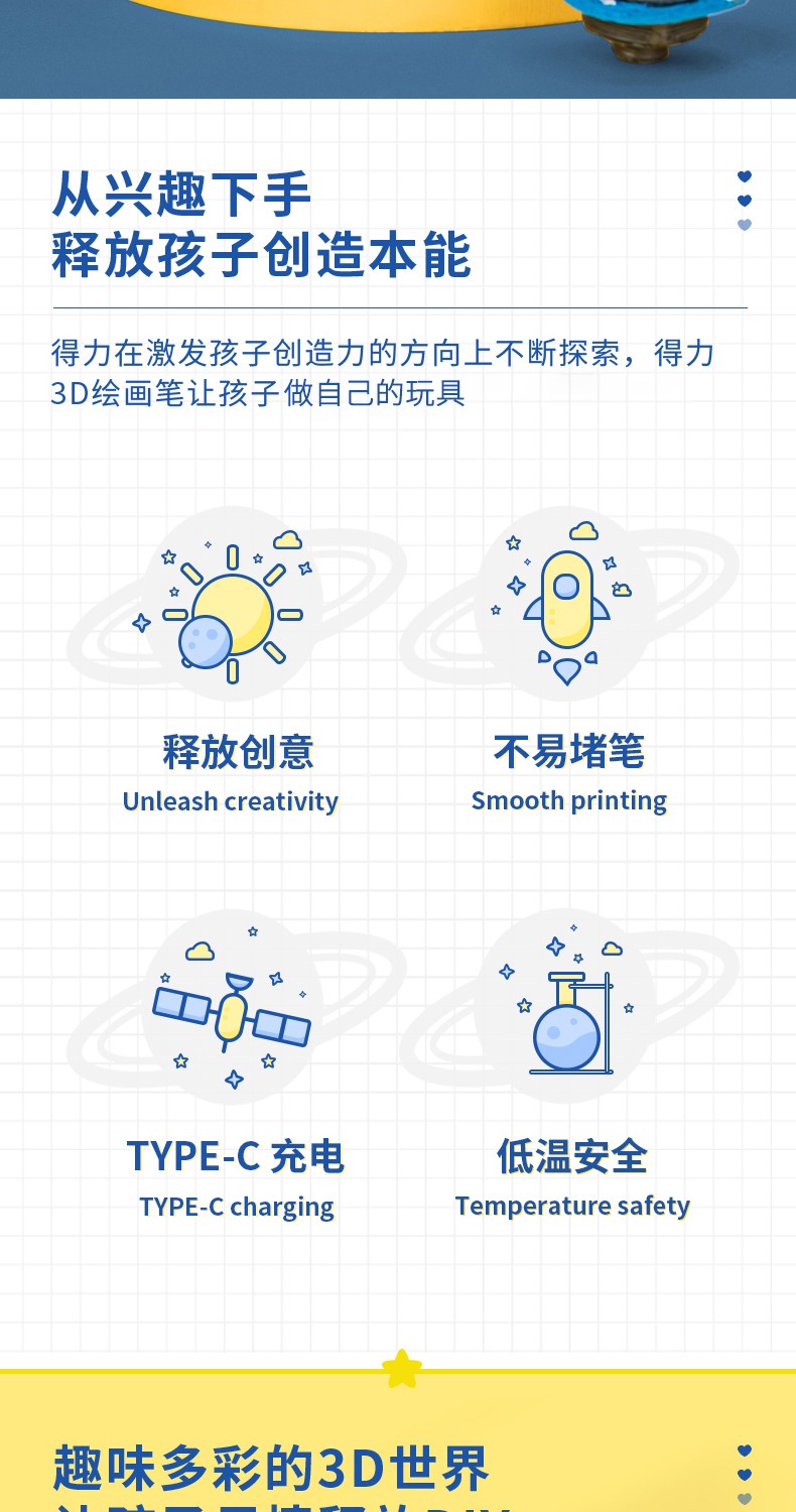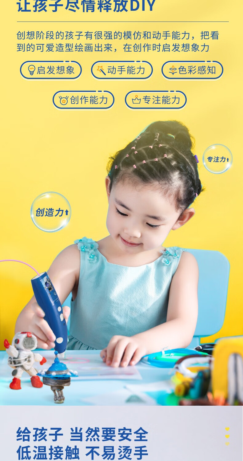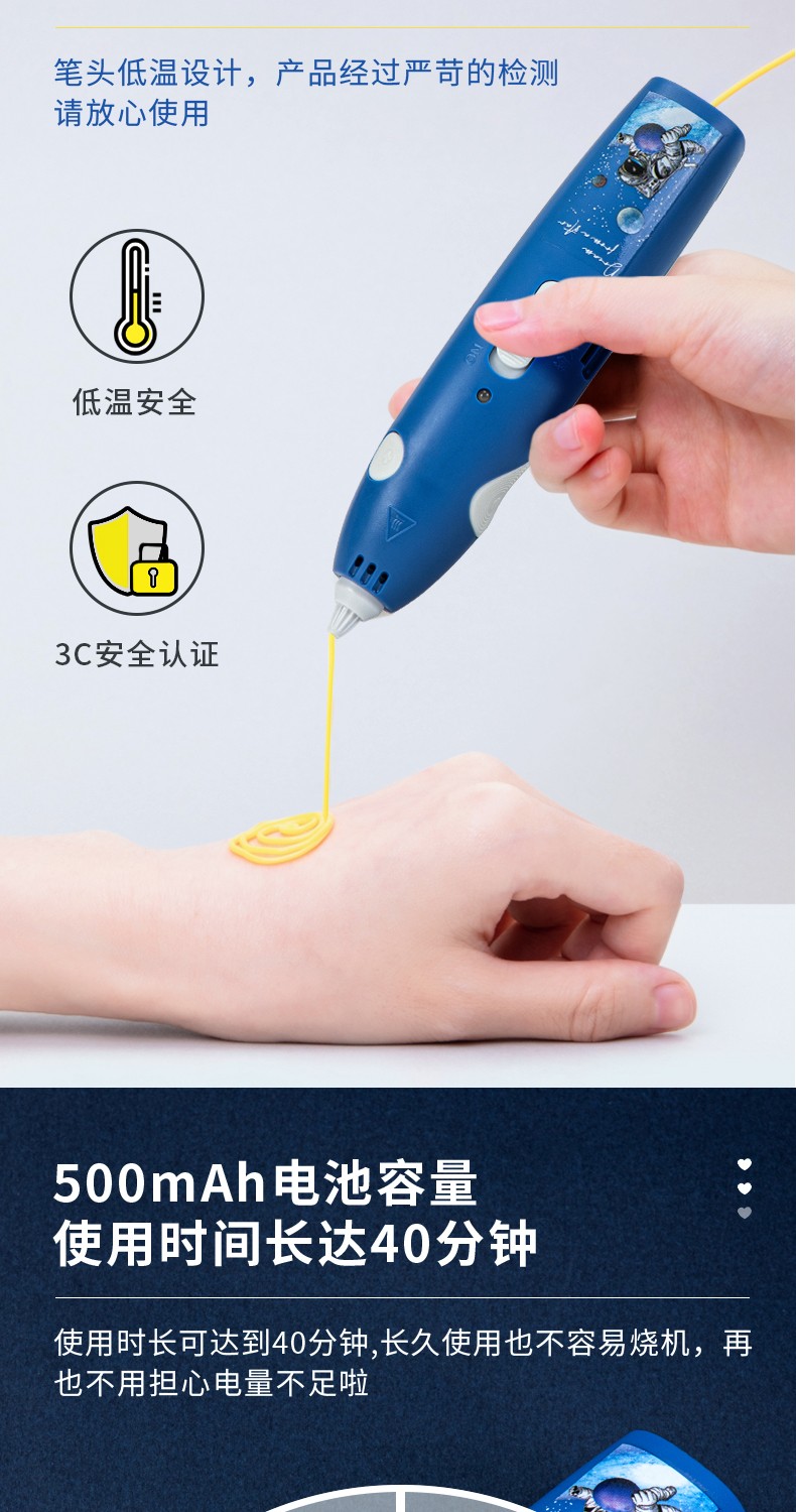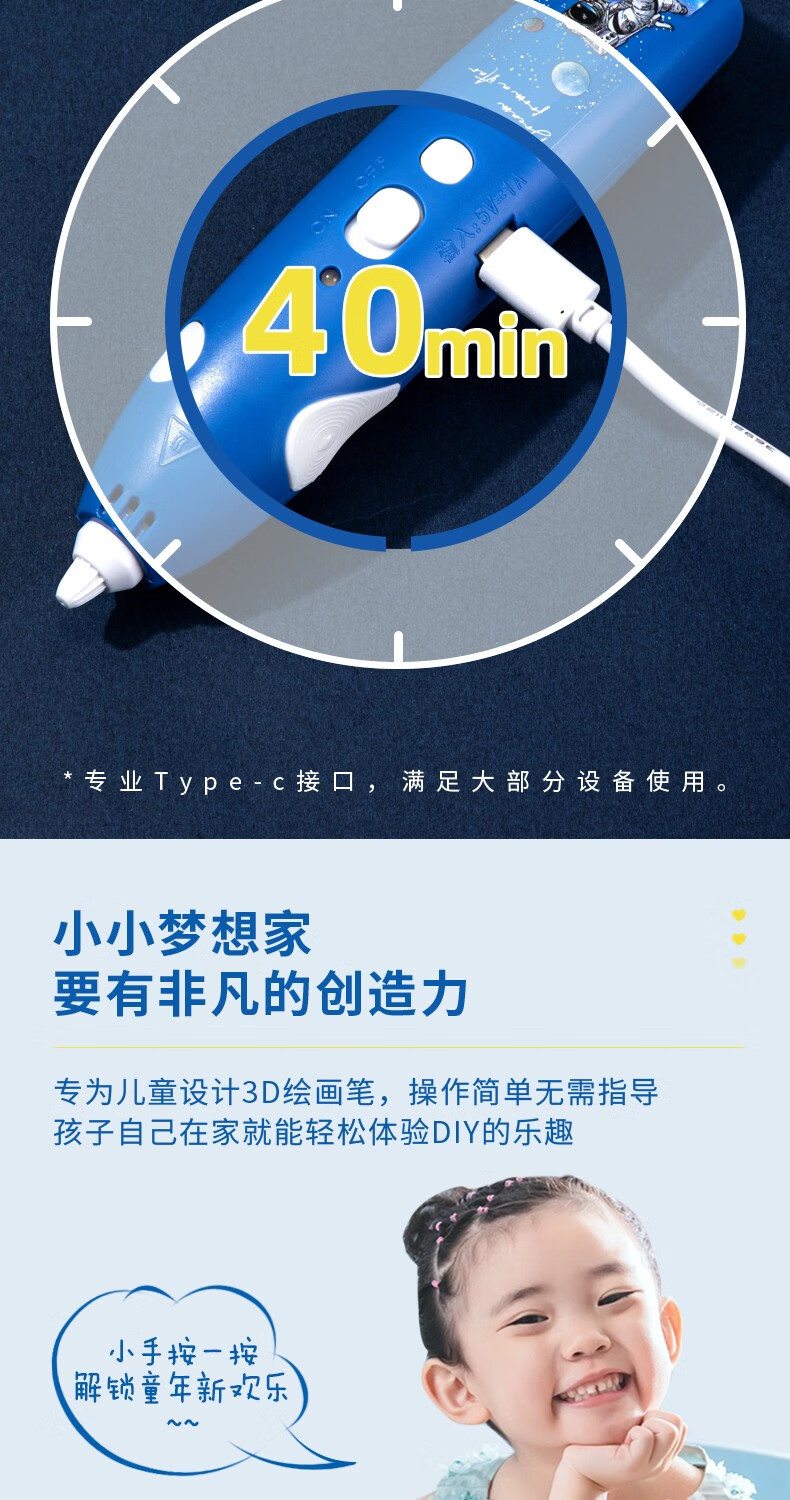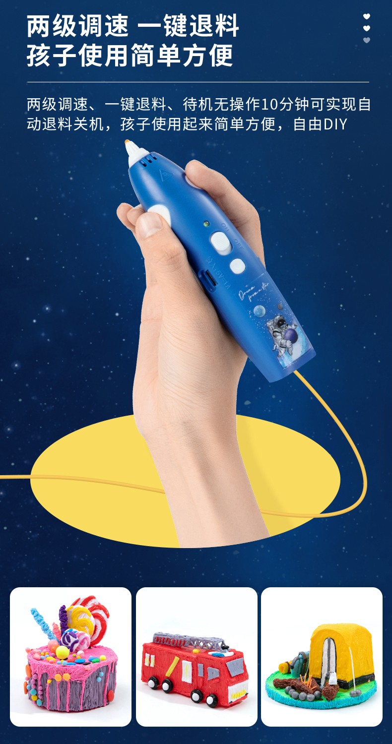 ¥5.34得力(deli)中國航天問蒼穹系列 3D打印筆 兒童立體涂鴉繪畫套裝充電款低溫安全打印神筆 【問蒼穹】打印筆+100米耗材套裝