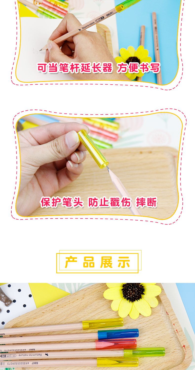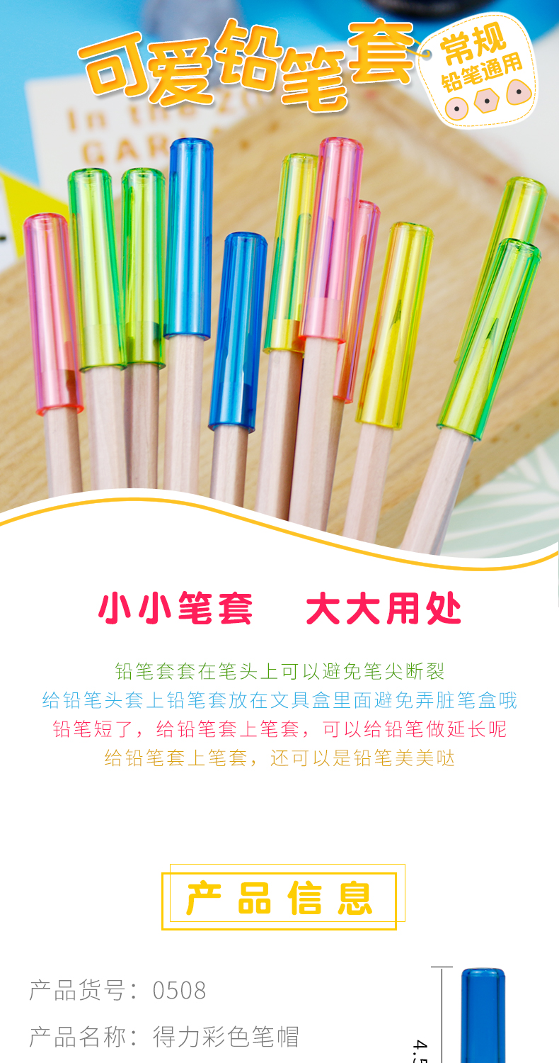得力(deli)鉛筆套鉛筆蓋保護(hù)帽可愛(ài)卡通握筆器小學(xué)生筆帽兒童用鉛筆頭蓋 【4包裝】透明款鉛筆套 0508 自營(yíng)